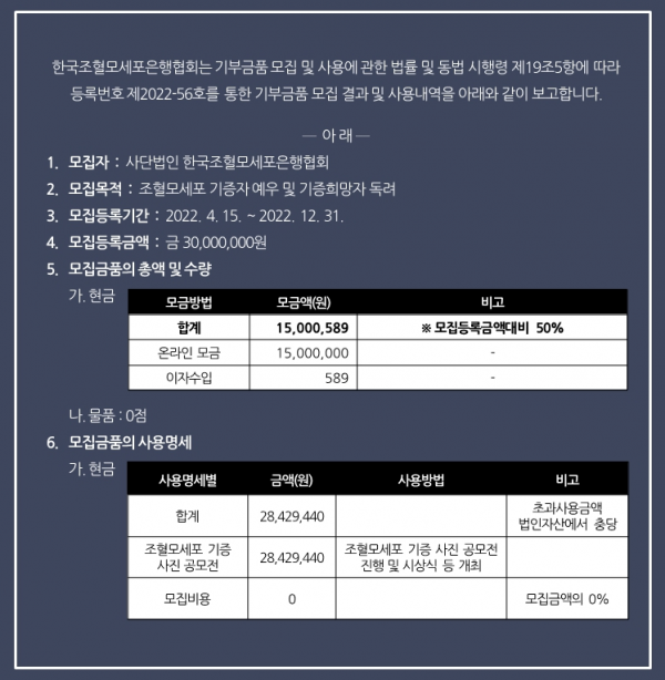 | 이전글 | 대한적십자사 2022년도 헌혈기부권사업 결산보고 자료 2023-03-29 | ||