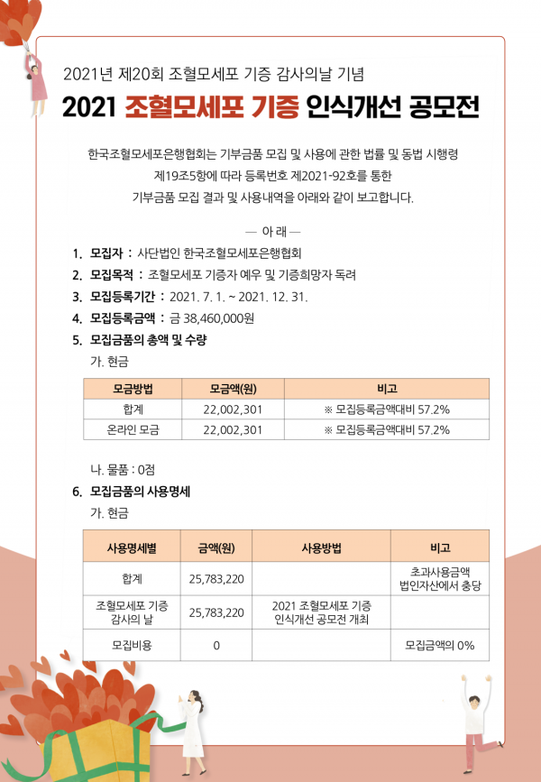 | 제목 | 기부금품 모집 및 사용명세 보고(2021) | 작성일 | 2021-11-01 13:20 |